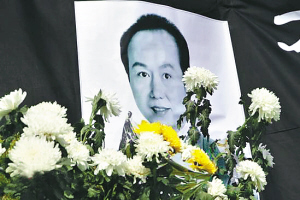 央视《新闻联播》播音员罗京的遗体告别式,6月11日上午在北京八宝山殡仪馆举行,近四万名群众到八宝山悼念罗京。 7时许,群众在东礼堂东侧列队,他们每人胸前佩戴着白花,手捧印有罗京遗像的纪念册。当看到灵车缓缓驶来时,群众高举纪念册,有人连呼“罗老师,您走好!” 9时40分,东礼堂对群众开放之后,每一个悼念的群众都会在罗京的遗体旁深深地鞠上一躬。众多群众感慨,电视屏幕上的罗京早已是生活中的老朋友,今天是第一次见到罗京本人,没想到也是最后一面。 与罗京有一面之缘的朋友,从北京、浙江等地赶来。家住北四环的74岁的姜大爷曾与罗京在长安大戏院有过一面之缘。今日,他手持自制的罗京遗像,凌晨4时便独自一人乘车赶到八宝山。他告诉记者,自己一直坚持每天收看《新闻联播》,这张罗京照片是他从杂志上剪下来的,已经珍藏了20年。 中国传媒大学播音系数十位学生也结伴赶来,送师哥最后一程。 李瑞英、王宁、李修平、敬一丹等30多位罗京生前的同事及好友也赶来相送。众名嘴在吊唁现场均保持了缄默的态度。追悼会结束后,只有郎永淳出来向观众鞠躬表达感谢,“我们会把对罗老师的怀念化作工作的动力,继续前进,不辜负广大群众的期望,”“希望罗老师在天堂里能绚烂开放。” 被誉为“国嘴”的罗京,于2009年6月5日7时05分因淋巴癌扩散在北京解放军307医院病逝,终年48岁。他生于1961年,出生于北京,祖籍重庆,中国中央电视台《新闻联播》节目的主播之一,中共十七大代表。 罗京的名字在中国大陆家喻户晓,民众熟悉他沉稳浑厚的嗓音及庄重的屏幕形象。由于罗京播音时鲜见笑容,观众称他为“冷面小生”。 2004年至2008年,罗京连续5年被评为央视最佳播音主持人。 (钟欣) |