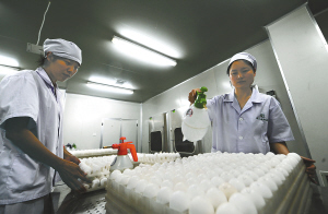 6月11日,大连雅立峰生物制药有限公司工作人员对挑选出的鸡蛋胚胎进行消毒处理。目前,该公司正进行甲型H1N1型流感病毒毒株传代的研发工作。如果顺利的话,最快可以在7月底前生产出第一批疫苗。据了解,由于流感病毒对鸡蛋内的环境最为敏感,疫苗的生产是通过将病毒接种在鸡胚中,之后把病毒表面的抗原提取出来,然后接种到人体,刺激机体产生抗体。 新华社发