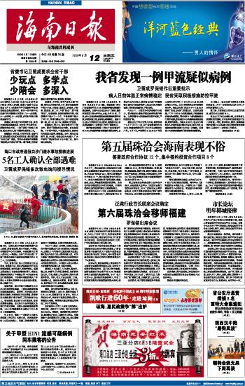 海南日报 头版 001 2009-06-121 2009年06月12日 星期五