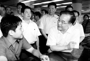温家宝对就业等民生问题十分牵挂。12日下午,他来到株洲市人力资源市场进行调研,详细了解就业和养老、医保等社会保障情况。13日下午,他又来到湖南大学,与应届毕业生座谈,了解他们的就业情况。温家宝说,今年1至5月,全国新增就业470万人,其中5月份超过100万人,这说明随着经济企稳回升,就业机会也在增加。我们应对国际金融危机的根本目的,就是要提高人民群众的物质文化生活水平,并使人们无后顾之忧。