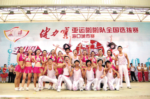 本报海口6月14日讯 (记者戎海)把舞蹈、健美操、技巧等结合起来,在音乐的律动中展示青春和活力,这就是啦啦队的魅力所在。昨天下午,健力宝亚运啦啦队全国选拔赛海口城市赛在海南师范大学黄华康体育馆举行。14支参赛队伍经过激烈争夺,最终“串客”和“LUCKY STAR”两支队伍晋级,将代表海口赴广州参加华南赛区的决赛。
