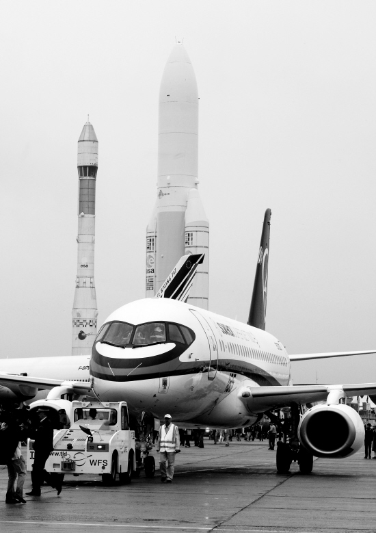 6月15日,俄罗斯苏霍伊公司最新研制的商用飞机Superjet100在第48届巴黎国际航展首日亮相。 新华社发