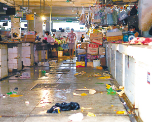 海口大英农贸市场内到处是垃圾污水 |