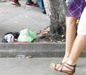 公务员李天才说,他住在海府路,下午三四点钟时,经常会看到一些垃圾就堆放在海府路两边的树下及人行道边,这些垃圾不仅破坏市容市貌,同时给路人带来视觉的不悦。