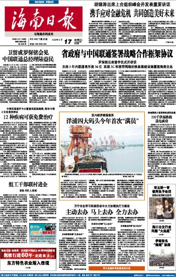 海南日报 头版 001 2009-06-171 2009年06月17日 星期三