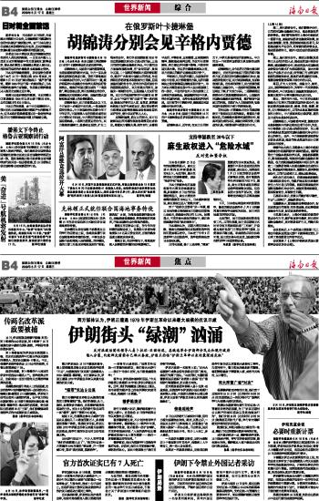 海南日报 世界新闻 012 2009-06-171 2009年06月17日 星期三