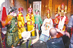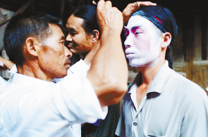 | 孟戏剧组的演员在化妆。 |