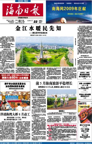 海南日报 头版 001 2009-06-221 2009年06月22日 星期一