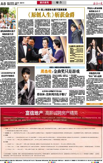 海南日报 娱乐新闻 008 2009-06-221 2009年06月22日 星期一