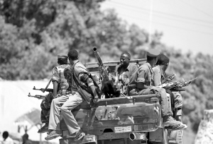 | 索马里政府军士兵6月21日在首都摩加迪沙巡逻。 新华社/法新 |