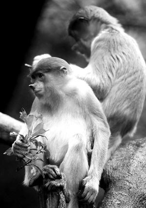 6月22日,在日本横滨市动物园,两只长鼻猴在树上玩耍。长鼻猴为东南亚特有,个子小却有着随年龄增长变得又长又大的鼻子。在日本,长鼻猴和古代传说中的“天狗”长得很像,所以又被日本人称为“天狗猴”。2009年,横滨动物园从印度尼西亚首次引进了5只长鼻猴。 新华社发