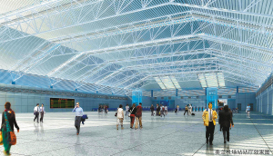 6月21下午,中铁17局的工人们在深达10米至20米的海南东环铁路海口美兰机场站基坑中作业。海南东环铁路海口美兰机场站全面动工。 据了解,东环铁路海口美兰机场火车站位于机场广场前绿地下,与机场候机楼平行。通过330米长的地下通道,旅客可以换乘飞机或火车,非常方便。 图为东环美兰机场站站厅效果图。 本报记者 古月 翻拍