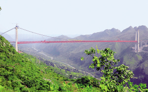 大桥主跨1088米,桥面距峡谷谷底约370米
