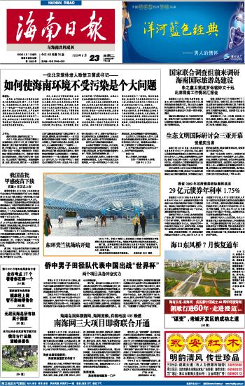 海南日报 头版 001 2009-06-231 2009年06月23日 星期二