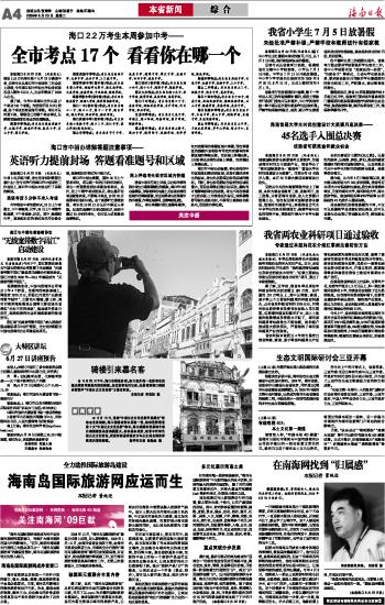海南日报 本省新闻 004 2009-06-231 2009年06月23日 星期二
