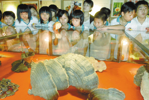 6月24日上午,海警十一支队军事体验基地、海南省野生灵芝科技馆、中国移动海南公司海口体验基地、中国电信海口分公司体验基地、三江镇凤生香草园体验基地与海南热带野生动植物园体验基地在海口市举行挂牌仪式。至此,海口市共建成35家“未成年人校外体验基地”,中小学生均可免费参观学习。图为海口市义龙中学学生在海南省野生灵芝科技馆观赏灵芝。 本报记者 苏建强 摄影报道