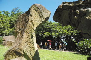 6月20日,海口火山口国家地质公园里,在绿色怀抱中穿行的游客们感受着大自然的鬼斧神工和美丽神奇。