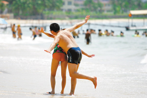大海挑动着人们的浪漫情怀,对于热恋中的人们,更是如此。在三亚的日子,随处可见牵手散步的爱侣。然而,最让我们感动的则是一对老年夫妇,白发苍苍,拄着拐杖,相互牵扶,在沙滩上漫步,偶尔停下来,看看远处的海,淡淡地聊上几句……我不禁轻轻地问男友:“50年后我们会怎样?”他坏坏地说:“50年后,我们还一起来三亚。到时你可一定得学会游泳呦。”