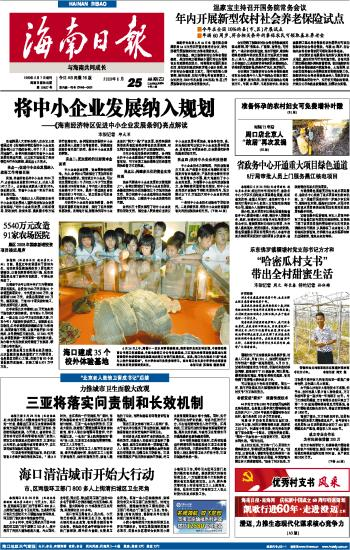 海南日报 头版 001 2009-06-251 2009年06月25日 星期四