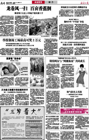 海南日报 本省新闻 综 合 004 2009-06-251 2009年06月25日 星期四