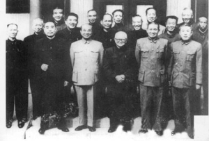 | 一九六O年十一月,周恩来会见黄埔校友。后排右三为郑庭笈。 |