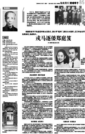 侄子郑心松说,郑庭笈1925年考取黄埔军校后,一生戎马,很少回乡。郑氏四兄弟在功成名就后的1937年,合资兴建了这座远近闻名的祖居,祖居的正堂挂着郑庭笈一生主要活动的照片。其中一张老照片上,英俊的青年与一位温婉可人的女子相偎依,那种透露出来的甜蜜和温馨让见者为之动容。