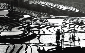 | 夕阳下,梯田散发出迷人的光彩。 |