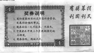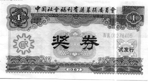 图为1987年7月27日试发行的第一套中国福利彩票正反两面。