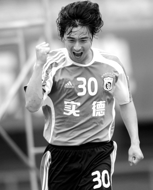 6月28日,大连实德队球员安贞焕庆祝进球。 新华社发