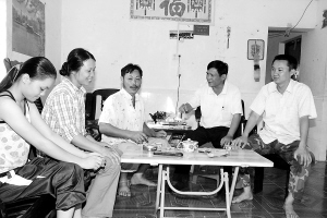 | 图为吴明荣(右二)上门与群众沟通,协调解决纠纷。 特约记者 曾高文 摄 |