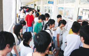 7月1日,考生准备进入考场。当日,2009年台湾地区大学入学指定科目考试开考。台北天气炎热,考生在考场内认真答卷,考场外众多家长焦急陪“烤”。 新华社发(吴景腾 摄)