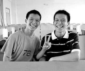 今天中午1点左右,记者在面试室外见到了这对双胞胎兄弟。乍一看,两人的体型、相貌都非常相似。“刚面试量了身高,我比弟弟稍微高一点,我一米七四,他一米七二。”符祥勋说。“不过我长得结实点哦。”弟弟“不服气”地笑着说。