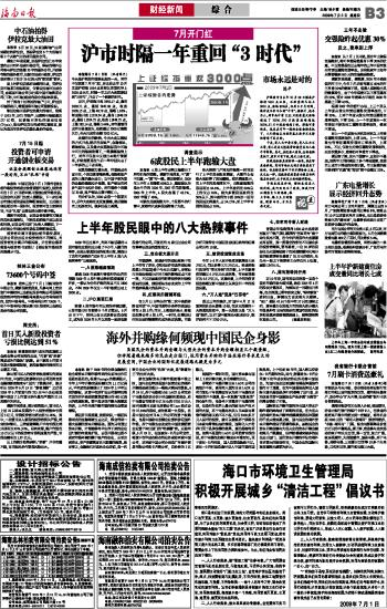 海南日报 财经新闻 011 2009-07-021 2009年07月02日 星期四