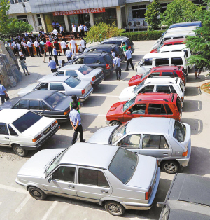 图为将要归还事主的被盗车辆(7月2日摄)。 近期,北京市公安局丰台分局破获两起重大盗窃机动车案件,追回被盗车辆31辆。7月2日,北京市公安局丰台分局把其中的24辆办好手续的车辆归还给事主。 新华社记者 李文 摄