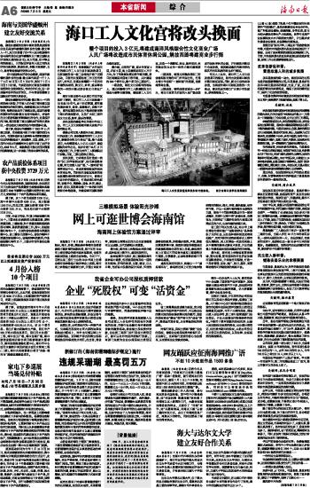 本报海口7月2日讯 (记者卓上雄 特约记者陈安宇)备受椰城广大市民关注的海口市工人文化宫旧城改造项目,已获国家及省一级工会批准并将于近期启动,目前有关前期准备工作正在有序进行。两年后,在现址将崛起一个具有南洋建筑风格的,聚文化、体育、娱乐等功能为一体的内街式综合性文化商业广场。 海南日报记者今天从海口市龙华区政府了解到,海口市工人文化宫始建于20世纪50年代。由于历史原因,现有建筑楼房破旧,设备、设施落后,功能不齐全,现有规模及状况已不能适应新形势下海口的发展要求,以及广大职工和市民文化生活、教育、娱乐的需要。 这次改造的建设单位为海口市总工会、市工人文化宫和海南容大房地产开发有限公司。 据该公司负责人黎照兴介绍,即将进行的改造工作,将拆除现有的市工人文化宫,新建综合性文化商业广场。整个改造项目,大约需要投入3亿元人民币,建设期限为两年左右。初步计划于本月15日开始改造工作,并首先对市工人影剧院进行拆除。目前,工影已经停止营业。 这次改造,力求将这里打造成一流的“职工的学校和乐园”,依托解放路商业圈,努力连接人民广场、“一园两湖”和海秀商业中心,形成连接老城区的观光休闲商业带。同时依托老城区浓厚的商业氛围及海南深厚的历史文化,借助文化宫对外的辐射力,打造成海口特色鲜明、功能齐全,集购物、美食、休闲、娱乐、教育、培训、展览等功能于一体的时尚消费综合体验基地,为建设海南国际旅游岛添砖加瓦。 据介绍,未来的广场,设计为前面4层,后面9层,地上总建筑面积近4万平方米。为了有效解决周边停车难问题,项目还将建设两层地下停车场,共计建设约600个停车位。整个项目分三期进行。 一期改造,将在文化宫现有的地块上,通过拆除海口市工人影剧院及文化活动大楼等旧建筑物,建设新工人文化宫。这是一个集影视、商业、教育培训、休闲娱乐及办公为一体的内街式建筑群体。 二期改造,将通过拆除改造职工宿舍楼和东南角的西门外市民住宅,打通与青少年宫和“一园两湖”的通道,连接海秀商业圈。 三期改造,将把改造区域进一步扩大,将文化宫项目后面的人民广场改造成市民体育休闲公园,并对解放西路进行全面改造,将其建成最具有海南特色和具有南洋风格的商业步行街区。 有关人士认为,海口市工人文化宫改造项目的推进,将有力改变海口解放西路旧城区面貌。同时,新文化宫的成功改造,也将成为海口旧城区改造的一大亮点,使这里成为海口广大青少年及家长、游客集散地之一。 |