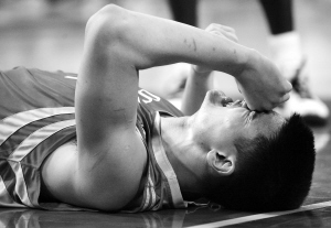 | 7月2日,据NBA官方网站报道,姚明已经决定再次接受脚部手术,有可能在下赛季过半后重返赛场。这是姚明在2009年5月4日火箭队与湖人队的季后赛西部半决赛第一场比赛中,右膝受伤时的资料照片。 新华社发 |