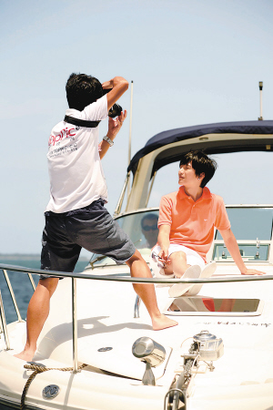 | 陈楚生在游艇上配合摄影师拍片子。 本报记者 程范淦 摄 |