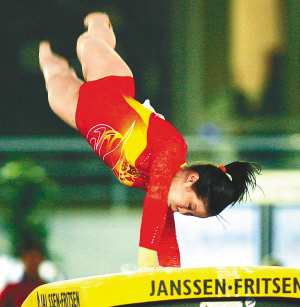 7月3日,在第25届世界大运会女子体操比赛中,中国队夺得团体冠军。图为程菲在跳马比赛中。 新华社发