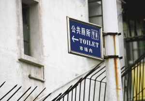 | 南宁友爱农贸市场公厕的指示牌。 |