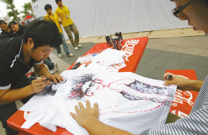 7月4日,海南首届涂鸦大赛在海口上邦百汇城举行,来自社会各界的年轻人手持喷漆及绘笔,在涂鸦墙或涂鸦T恤上作画,以此进行自我表达。 本报记者 张杰 摄