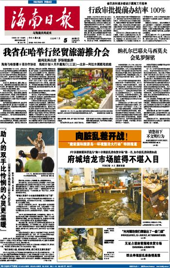 海南日报 头版 001 2009-07-051 2009年07月05日 星期日