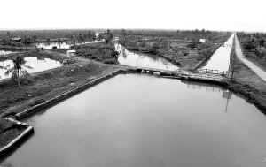 | 一九七O年代,海南三江农场围垦万亩红树林项目仓促上马,生态环境受到破坏。如今当年围垦的田地已被鱼塘、虾塘等所取代。
