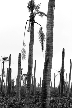 | 三江湾围海造田曾经改种万亩椰林。由于生态环境的恶化,土地盐碱度过高,椰林大面积死亡。