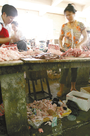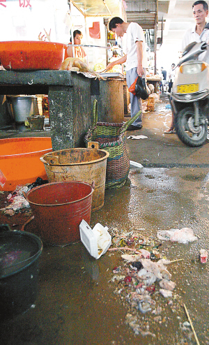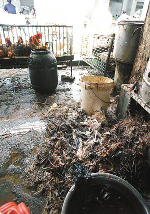 | ↑家禽摊点堆满鸡毛粪便,令人作呕。 |