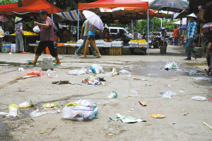 采访中,一位卖菜的摊主说:“记者你快曝光吧,我们这个市场是世界上最脏菜市场了,只有人收管理费,却很少打扫卫生”。记者注意到,这位摊主一边说一边往地上扔烂菜叶。