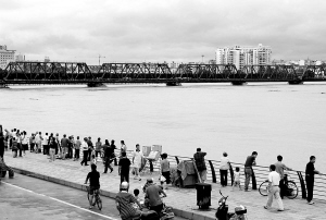 7月5日,市民在柳江铁路桥附近观看水情。当日2时,柳江柳州水文站迎来连日来最高89.64米的水位洪峰,超过警戒水位7.14米。随后水位平稳下降,这次20年一遇的洪峰顺利通过柳州。 新华社发