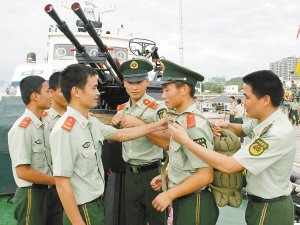 咱当兵的人就是不一样 百名新海警上船 在经过半年的海警舰艇专业学习和军事训练后,近日,100名海警新兵被分配到海南公安边防总队海警二支队舰艇部队,成为我国南海海域海警执法执勤生力军。 本报记者 王红卫 通讯员 黄继辉 摄影报道