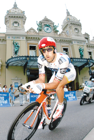 环法赛第一阶段结束 坎切拉拉领先 朗哥列第十 5日,2009年环法自行车赛在摩纳哥拉开战幕,坎切拉拉在第一赛段的个人计时赛中以19分32秒的成绩拔得头筹,穿上黄色领骑衫。 “七冠王”阿姆斯特朗也在当天取得了不错的成绩,他以20分12秒的成绩排在车手榜的第10位。图为法·坎切拉拉在比赛中骑行。 新华社发