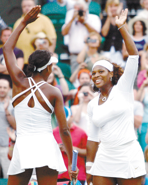 5日,在2009年温布尔登网球公开赛女双决赛中,威廉姆斯姐妹以2比0战胜澳大利亚组合斯托瑟/斯图布,夺得冠军。 新华社发