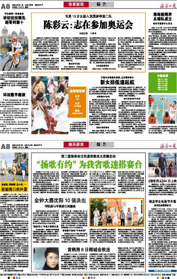 海南日报 体育新闻 008 2009-07-061 2009年07月06日 星期一